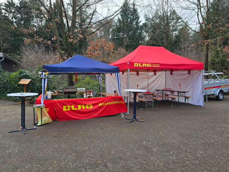 Auch die DLRG Unterlüß war wieder mit einem Stand vertreten und versorgte die Gäste mit frisch zubereiteten Pommes – ein Angebot, das großen Zuspruch fand. Bereits um 11 Uhr hatten sich die Helferinnen und Helfer der DLRG zum Aufbau getroffen. Pavillons, Tische, Bänke und Küchenausstattung wurden gemeinschaftlich aufgebaut, sodass pünktlich zum Start des Weihnachtsmarktes alles bereitstand.